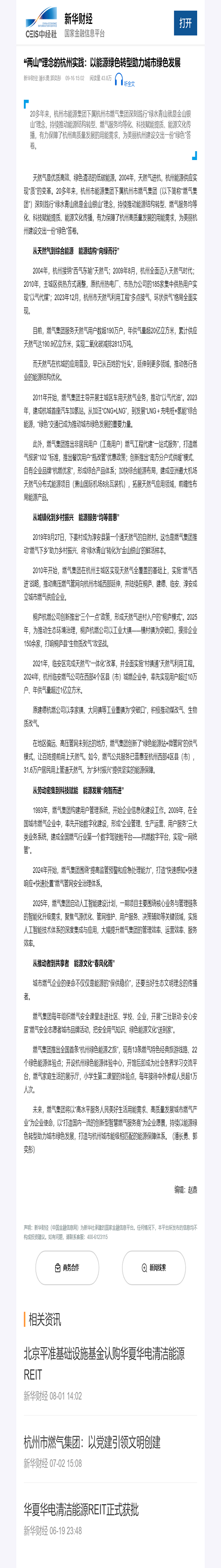 未來(lái),燃?xì)饧瘓F(tuán)將以“高水平服務(wù)人民美好生活用能需求、高質(zhì)量發(fā)展城市燃?xì)猱a(chǎn)業(yè)”為企業(yè)使命,以“打造國(guó)內(nèi)一流的創(chuàng)新型智慧燃?xì)夥⻊?wù)商”為企業(yè)愿景,持續(xù)以能源綠色轉(zhuǎn)型助力城市綠色發(fā)展,打造與杭州城市能級(jí)相匹配的能源保障體系。(潘長(zhǎng)勇、郭奕彤)